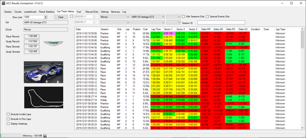 Assetto Corsa Competizione originally didn't give the user the ability to either view previous fastest laps, sessions or indeed view championship status (other than at completion of a round). With this in mind, I decided to create a little tool for my own purposes, to harvest what information there is in order to provide me with a means at reviewing this sort of information. Given that there have been a number of posts by sim racers bemoaning the lack of this information, I thought perhaps others may find it useful too.